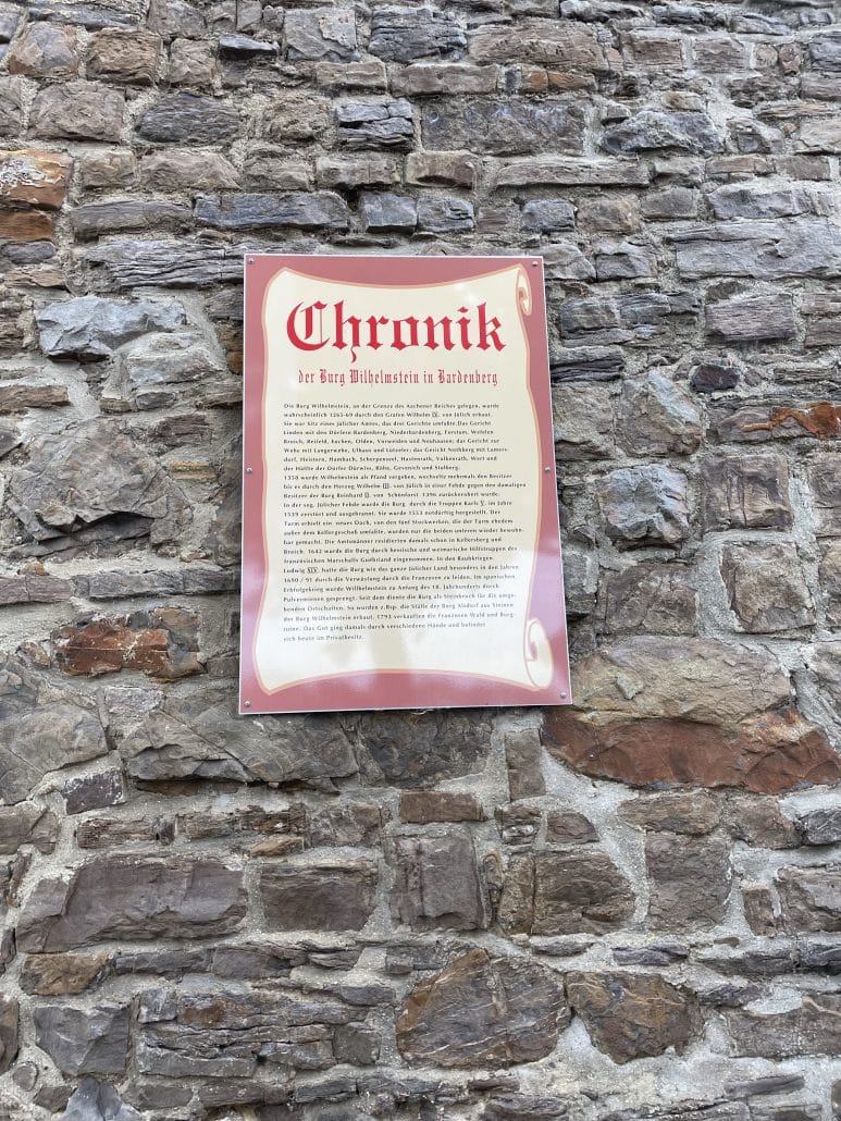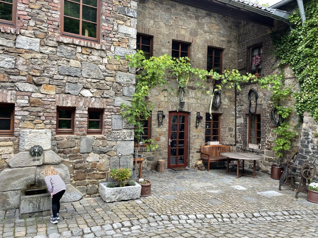 Kurz vor Aachen finden wir am Nachmittag einen Stellplatz für diese Nacht. Direkt an der Burgmauer.